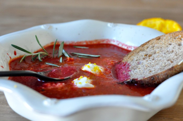 Ingredients: 415g beetroot. 415g carrots diced into chunks. 1 onion diced. Few garlic cloves. Rosemary. 2 oranges. 1L vegetable stock.
