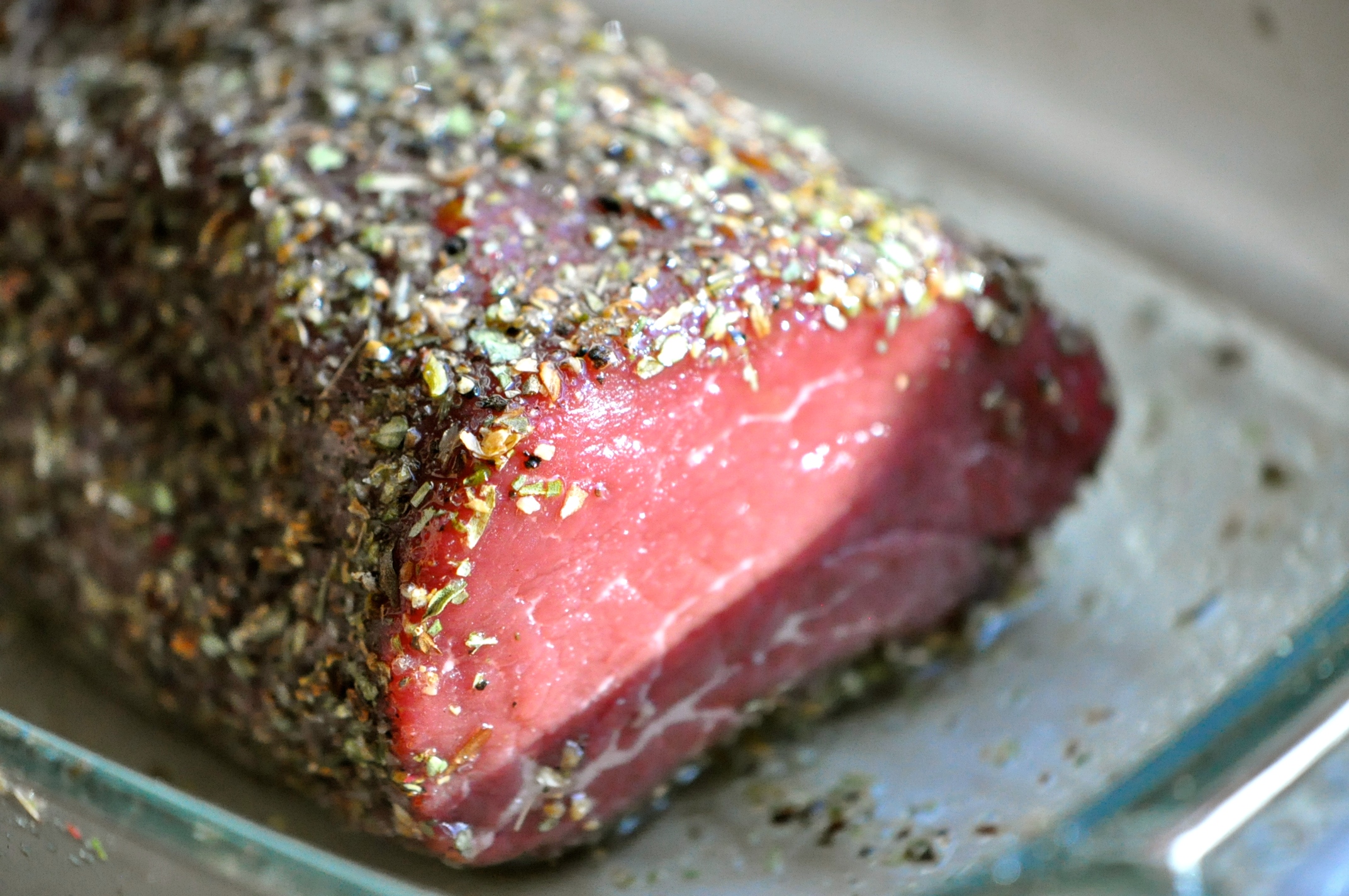 Rub the beef fillet with half the olive oil, thyme, sea salt and pepper (see small photo above of the fillet after marination). Heat a heavy based pan to high heat. Place the beef in the pan and seal on each side until a nice caramelized colour is achieved. Once the beef is cooked to your preference, place it on the side to rest. When it has cooled a little, cut it into 5mm thick slices. You will need a very sharp knife for this!